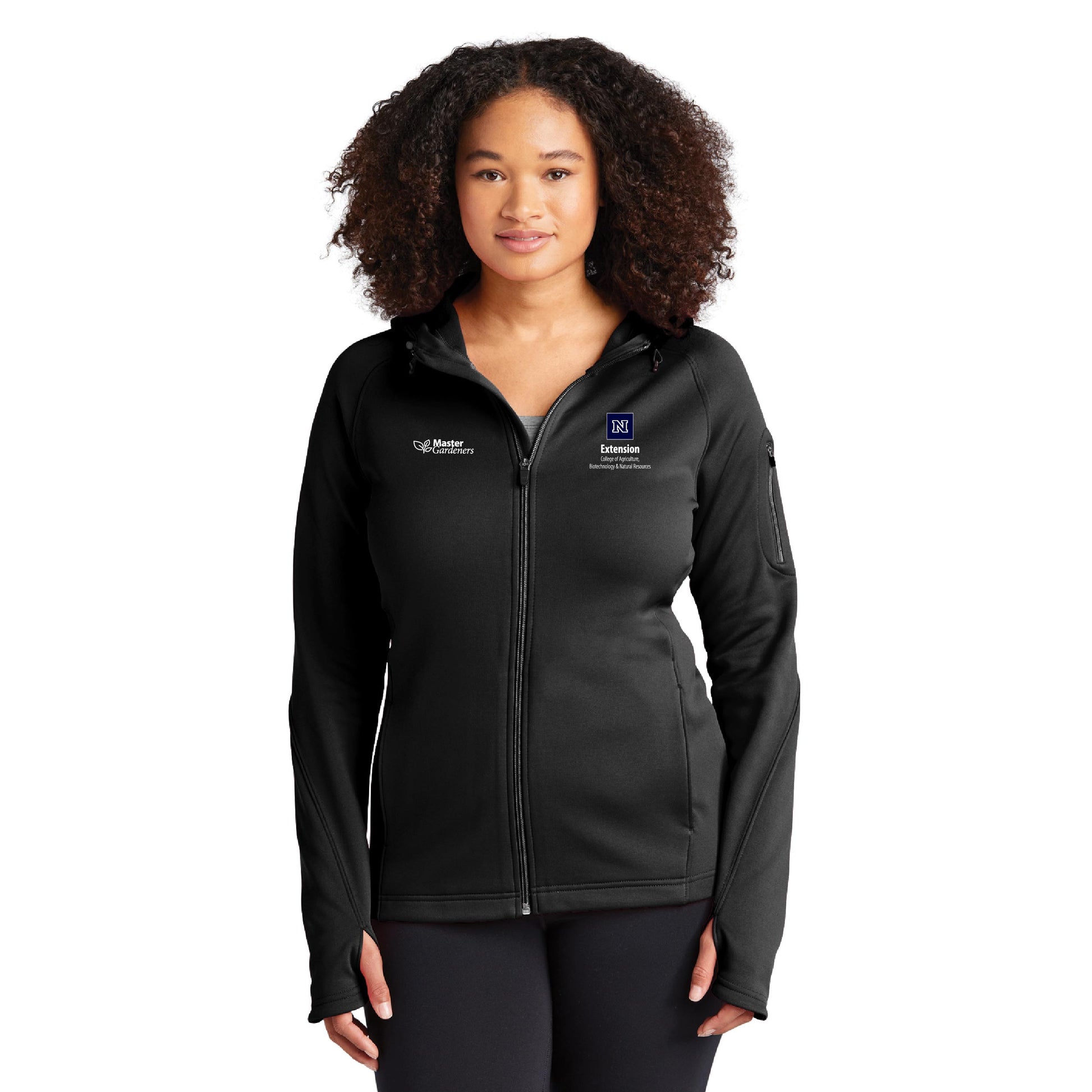 Snag-resistant and pill-resistant with a matte finish, this feminine double-knit jacket keeps moisture under control and allows maximum movement. The three-panel hood with drawcord and toggles offers year-round versatility.