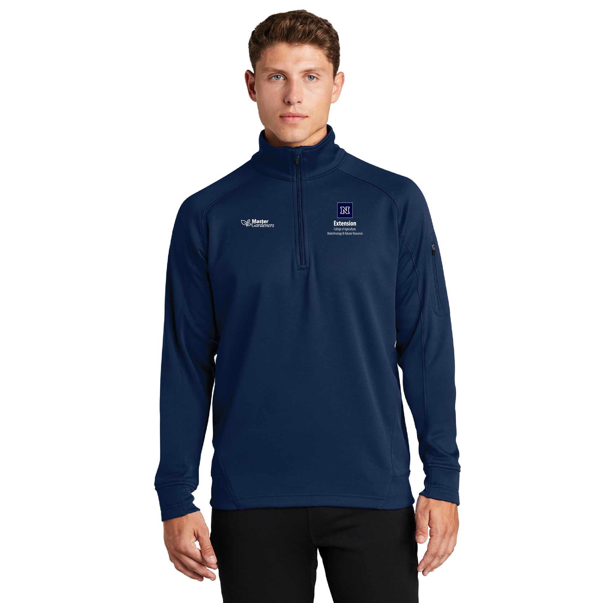 Cool, dry and colorfast, this quarter-zip pullover has a pill-resistant, snag-resistant face with a matte finish and brushed backing for comfort. It features double-knit construction, as well as a zippered pocket on the left sleeve and a chin guard.